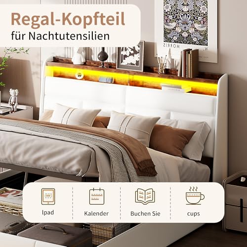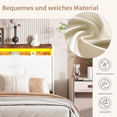 Kopfteil mit Ablagefach:Das Bettkopfteil dieses Polsterbetts bietet praktischen Stauraum für Bücher, Tablets oder Wecker. Die durchdachte Ablegen erleichtert den Alltag und sorgt für eine aufgeräumte Schlafumgebung.Lesen Sie Ihr Lieblingsbuch im Bett und haben Sie Ihre wichtigsten Dinge stets griffbereit