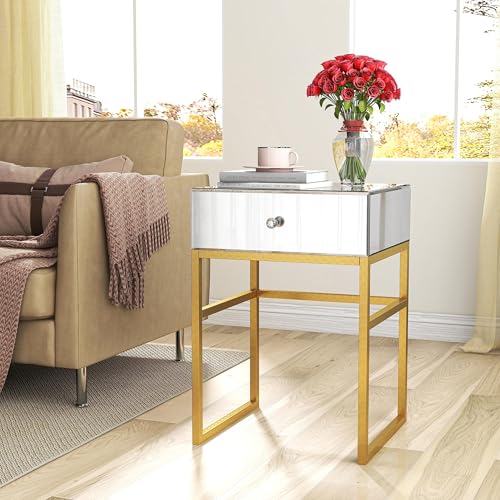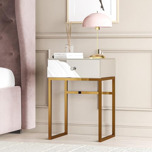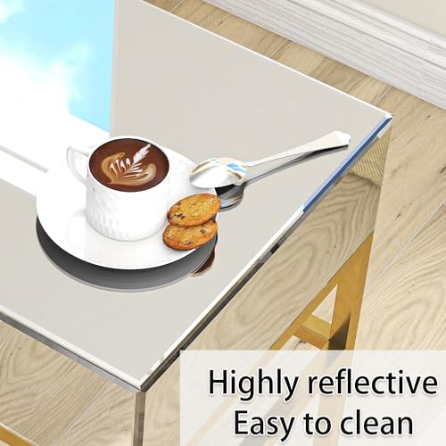 【Luxuriöses, reflektierendes Design】Verschönern Sie Ihr Interieur mit diesem atemberaubenden, goldfarbenen Spiegeltisch. Die hochglänzende, reflektierende Oberfläche fängt das Umgebungslicht ein und verstärkt es. Das strahlende Goldfinish verleiht dem Tisch einen Hauch von Luxus und modernem Glamour und macht ihn zum Blickfang in jedem Raum. Ob trendig, Art déco oder eklektisch – dieser Tisch hellt den Raum sofort auf und vergrößert ihn optisch. So entsteht eine Atmosphäre von Eleganz und Stil.