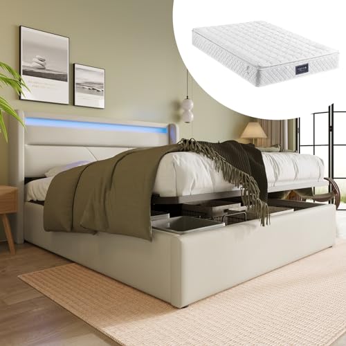 【Polsterbett 160x200cm】Jeder PU-Leder, Größe:203 x 265 x 107 CM