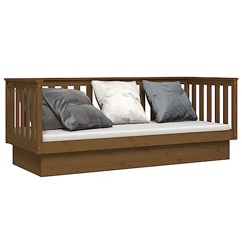 Dieses vielseitige Tagesbett kann sowohl als Bett im Schlafzimmer verwendet werden, als auch als Sofa im Wohnzimmer dienen. Es erfüllt die unterschiedlichsten Bedürfnisse und bietet massenweise Platz zum Schlafen oder Ausruhen. Massives Kiefernholz: Massives Kiefernholz ist ein wunderschönes Naturmaterial. Kiefernholz weist eine gerade Maserung auf und die Aststellen verleihen dem Material seine charakteristische, rustikale Optik. Aus massivem Kiefernholz gefertigt, ist dieses Gästebett leistungsfähig und langlebig. Vielseitig einsetzbar: Dieses Sofabett aus Holz kann tagsüber als Sofa und nachts als Bett verwendet werden, um Übernachtungsgästen einen gemütlichen Schlafplatz zu bieten.Stabiler Bettrahmen: Der Holzrahmen sorgt für Robustheit und Stabilität. Die Latten sehen nach eine gute Gewichtsverteilung und stellen belastbar, dass die Matratze bei jeder Drehung und Wendung deines Körpers während des Schlafs an ihrem Platz bleibt.Bettgitter auf 3 Seiten: Mit seinen seitlichen Bettgittern vermittelt dieses Gästebett ein Regung der Sicherheit und verleiht deinem Zuhause auch einen Hauch von raffiniertem Stil. Hinweis: Die Zustellung beinhaltet zugegeben einen Bettrahmen. Die Matratze ist nicht enthalten. In unserem Shop finden Sie auch passende Matratzen.Jedes Produkt wird mit einer Montageanleitung in der Verpackung für eine einfache Montage geliefert.