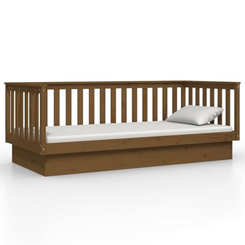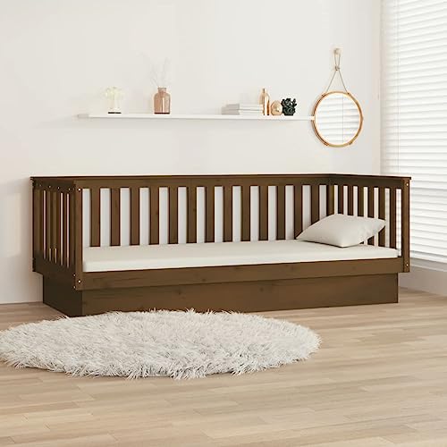 Dieses vielseitige Tagesbett kann sowohl als Bett im Schlafzimmer verwendet werden, als auch als Sofa im Wohnzimmer dienen. Es erfüllt die unterschiedlichsten Bedürfnisse und bietet en masse Platz zum Schlafen oder Ausruhen. Massives Kiefernholz: Massives Kiefernholz ist ein wunderschönes Naturmaterial. Kiefernholz weist eine gerade Maserung auf und die Aststellen verleihen dem Material seine charakteristische, rustikale Optik. Aus massivem Kiefernholz gefertigt, ist dieses Gästebett hart im Nehmen und langlebig. Vielseitig einsetzbar: Dieses Sofabett aus Holz kann tagsüber als Sofa und nachts als Bett verwendet werden, um Übernachtungsgästen einen gemütlichen Schlafplatz zu bieten.Stabiler Bettrahmen: Der Holzrahmen sorgt für Robustheit und Stabilität. Die Latten Acht geben eine gute Gewichtsverteilung und stellen abgehärtet, dass die Matratze bei jeder Drehung und Wendung deines Körpers während des Schlafs an ihrem Platz bleibt.Bettgitter auf 3 Seiten: Mit seinen seitlichen Bettgittern vermittelt dieses Gästebett ein Regung der Sicherheit und verleiht deinem Zuhause auch einen Hauch von raffiniertem Stil. Hinweis: Die Sendung beinhaltet zugegeben einen Bettrahmen. Die Matratze ist nicht enthalten. In unserem Shop finden Sie auch passende Matratzen.Jedes Produkt wird mit einer Montageanleitung in der Verpackung für eine einfache Montage geliefert.