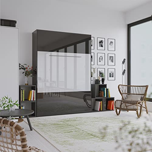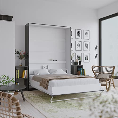 Vertikales Schrankbett, Modell Smart, 160 cm (Bett), speziell mit Gasdruckfeder ausgestattet. Lattenrost inklusive mit einer Liegefläche von 160 x 200 cm.