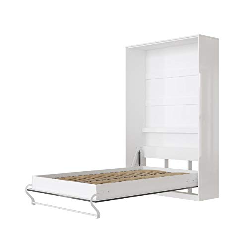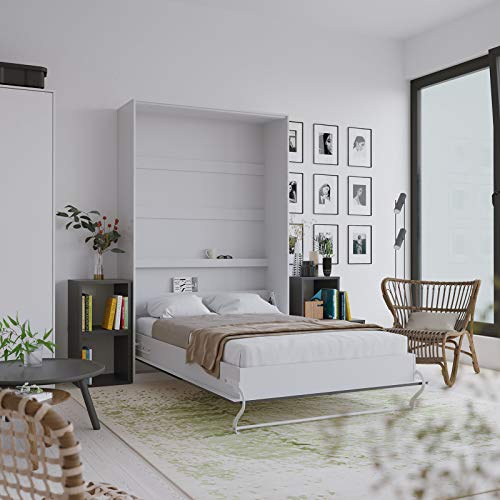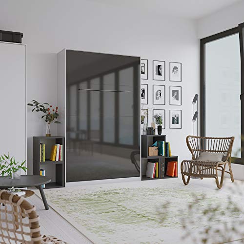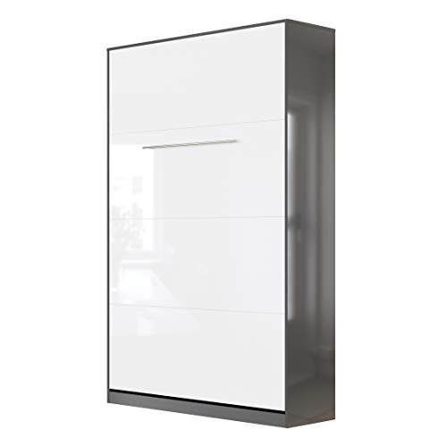 SMARTBett Standard 90×200 120×200 140×200 160×200 | Schrankbett, Wandbett, Wandklappbett fürs Gästezimmer, Büro, Wohnzimmer, Schlafzimmer Weiss Hochglanz/Anthrazit Hochglanz 120 Vertikal