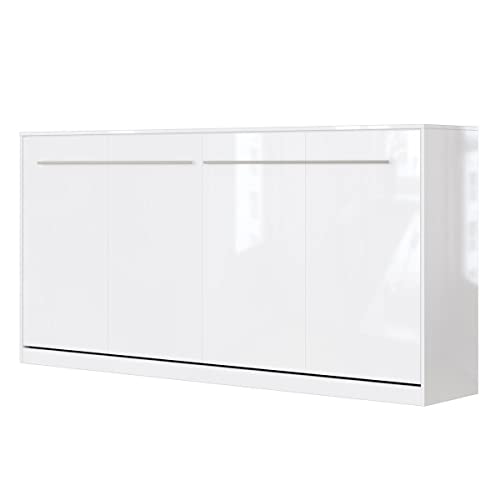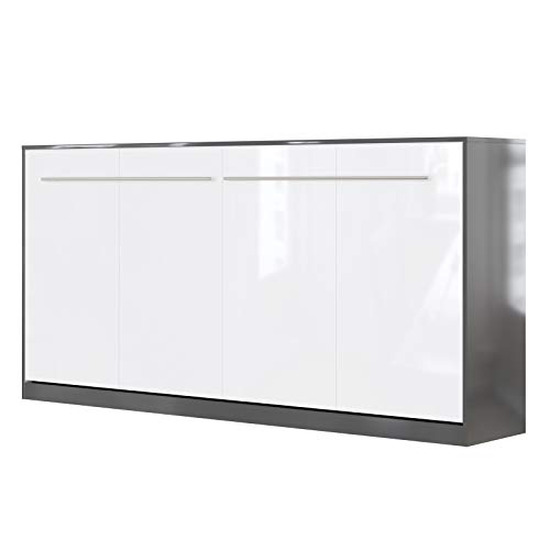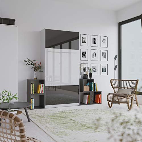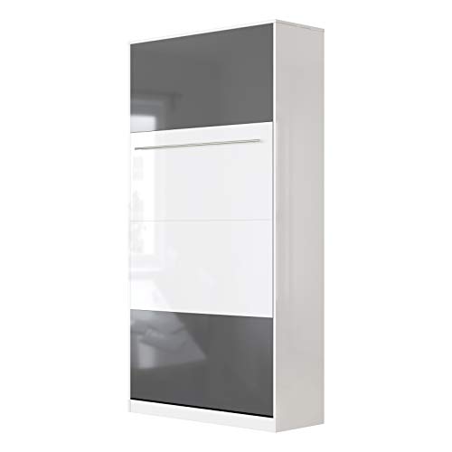 SMARTBett Standard 90×200 120×200 140×200 160×200 | Schrankbett, Wandbett, Wandklappbett fürs Gästezimmer, Büro, Wohnzimmer, Schlafzimmer Weiss Hochglanz/Anthrazit & Weiss Hochglanz 90 Vertikal