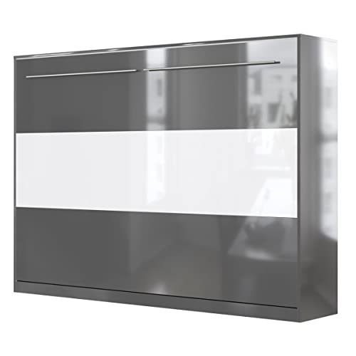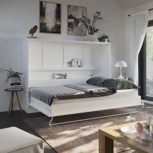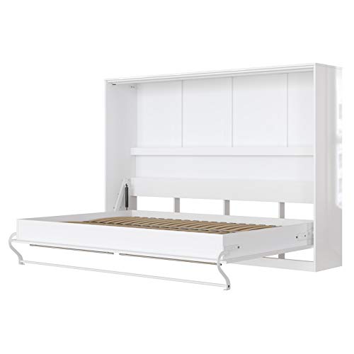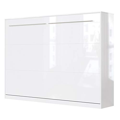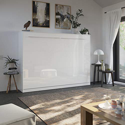 SMARTBett Standard 90×200 120×200 140×200 160×200 | Schrankbett, Wandbett, Wandklappbett fürs Gästezimmer, Büro, Wohnzimmer, Schlafzimmer Weiss Hochglanz/Weiss Hochglanz 140 Horizontal