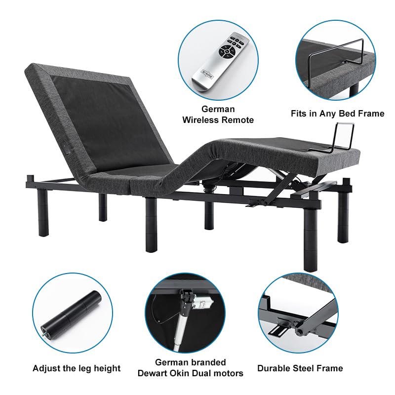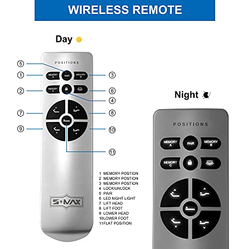 [Kabellose Fernbedienung mit Memory-Funktion]: Der Lattenrost Elektrisch Verstellbar Bettrahmen kann mit drei Positionen voreingestellt werden. Mit der Zero Clearance-Vergrößerung können Sie das Bett sogar sämtliche ohne Beine auf den Boden legen. Genießen Sie Ihr Lesen, Schinden und Fernsehen im Bett.