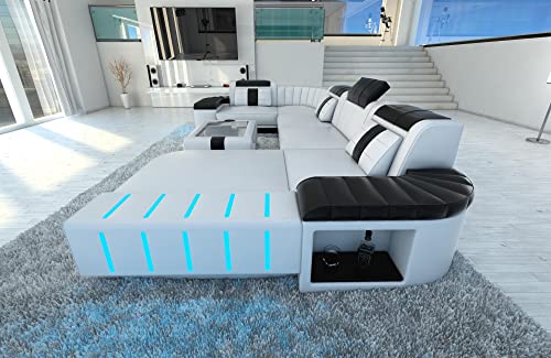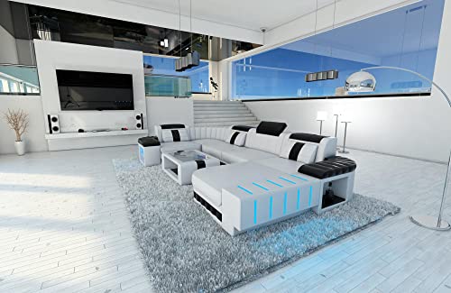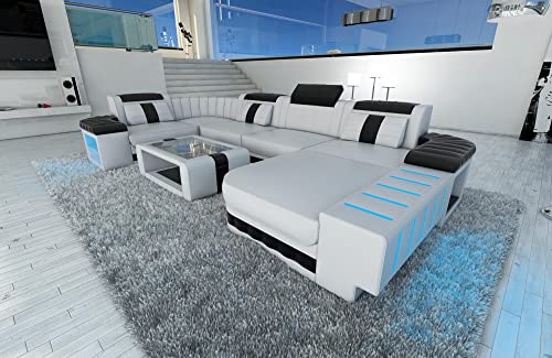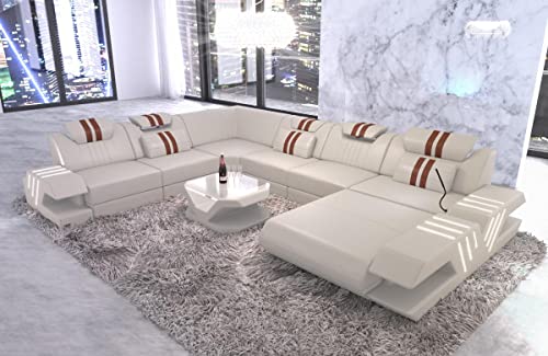 Das Ledersofa Bellagio in U-Form ist ein ebenso raffiniertes, wie formvollendetes Beispiel für modernes Design. Die gesteppten Armlehnen, die integrierte LED-Beleuchtung und die abgerundeten Ecken umsorgen ein individuelles und spannendes Aussehen. Zugleich fügt sich das Designersofa in die unterschiedlichsten Wohnräume ein, ohne sich unnötig in den Vordergrund zu spielen. Zu diesem Erledigung haben Sie zusätzlich die Kür aus verschiedenen Farbgebungen. In jeder Modifikation versorgt Sie das Ledersofa Bellagio mit einer Extraportion Platz. Neben gemütlichen Sitzflächen mit breiten und in der Höhe verstellbaren Kopfstützen lädt eine komfortable Liegefläche dazu ein, sich entspannt auszustrecken. Der gelungene optische Auftritt der Wohnlandschaft Bellagio wird ergänzt durch die hohe Qualität der verwendeten Materialien. Bei einer Bestellung haben Sie die Kür zwischen mehreren Lederarten. Sogar Abseitsposition dickes und strapazierfähiges Büffelleder stellen wir Ihnen zur Auswahl. Bei jeder Execution sorgt eine Bonell-Federung für einen hohen Sitzkomfort und verhindert die Entstehung von Sitzfalten. Die Kopfstützen lassen sich in der Höhe und in der Neigung verstellen. Dank der integrierten Staufächer haben Sie sogar die Möglichkeit, Zeitschriften, Bücher oder Getränke in dem Sofa aufzubewahren. Bequem, komfortabel und vielseitig – unser Ledersofa Bellagio.