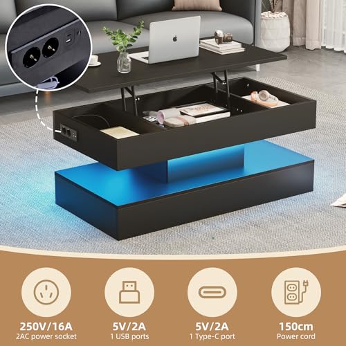 Darüber hinaus bietet der versteckte Stauraum unter der hochklappbaren Tischplatte eine großartige Auftrennung, um Ihre Wohnaccessoires versteckt aufzubewahren und nunmehr leicht darauf zugreifen zu können. Die robuste Struktur aus hochwertigen Spanplatten trägt bis zu 50 kg und garantiert eine langfristige Nutzung. Ausgestattet mit integrierten EU-Steckdosen und CE-Zertifizierung, bietet dieser Couchtisch nicht ungeachtet Komfort beim Aufladen Ihrer elektronischen Geräte, sondern auch Sicherheit.