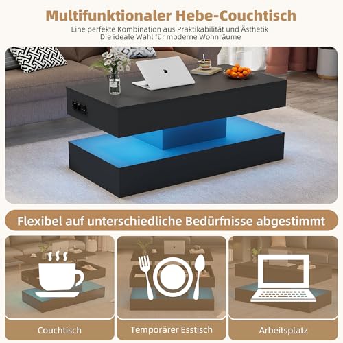✅Verborgener Stauraum: Unterhalb der hebbaren Tischplatte befindet sich ein versteckter Stauraum, perfekt um Wohnaccessoires oder Zeitschriften griffbereit daher unsichtbar zu verstauen. Dieses Design maximiert die Nutzflächeneffizienz moderner Wohnräume.