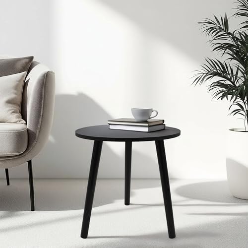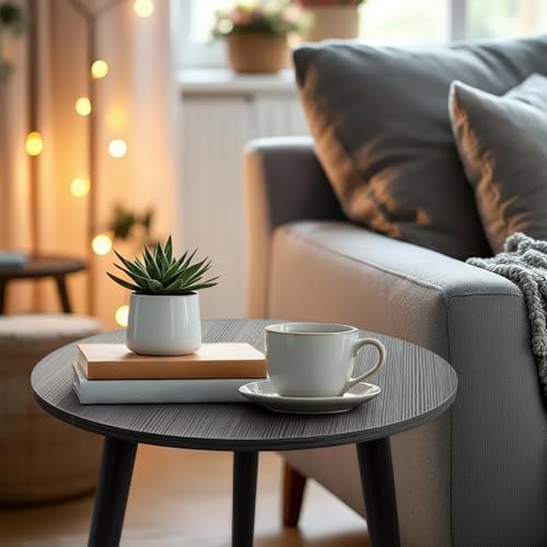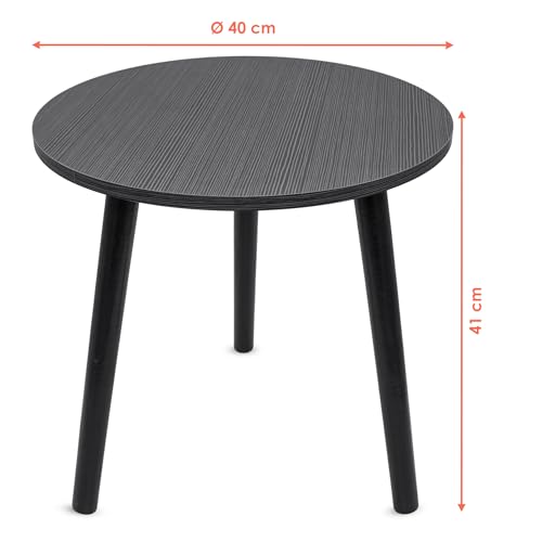 Runder kleiner Sofatisch ca. 41 cm Höhe unter anderem ca. 40 cm Durchmesser qua schwarzer strukturierter Holzplatte unter anderem 3 Beinen in schwarz