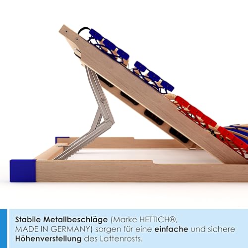 stabiler Marken-Federholzrahmen: VARIO PLUS SLEEP BEST 42, 100% Buche, Kopf- und Fußteil verstellbar – für 90x200cm Betten, exaktes feiner Unterschied: 89x196x7,5cm (BxLxH)