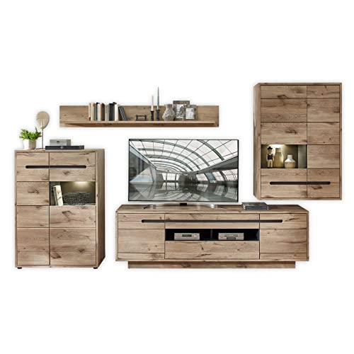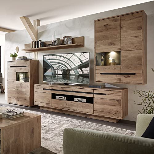 LEICHTE MONTAGE – Die Wohnwand ist dank der detaillierten Anleitung schnell und leicht montiert und also für Anfänger nach Maß. Das Montage-Material ist inklusive. Maße: 346 x 202 x 44 cm (B/H/T).