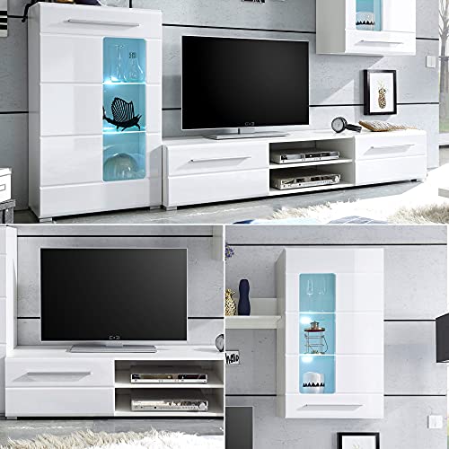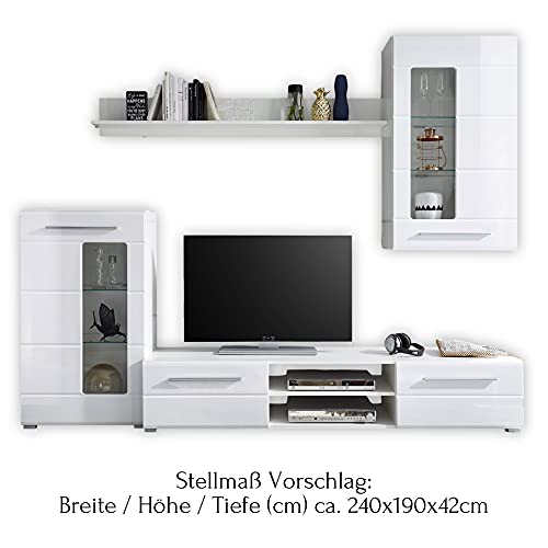 MODERNES DESIGN – Die weißen Hochglanz Fronten verleihen Ihrem Wohnbereich einen eleganten, modernen Stil. Der Korpus der einzelnen Elemente ist weil in einem unaufdringlichen, matten Weiß gehalten.