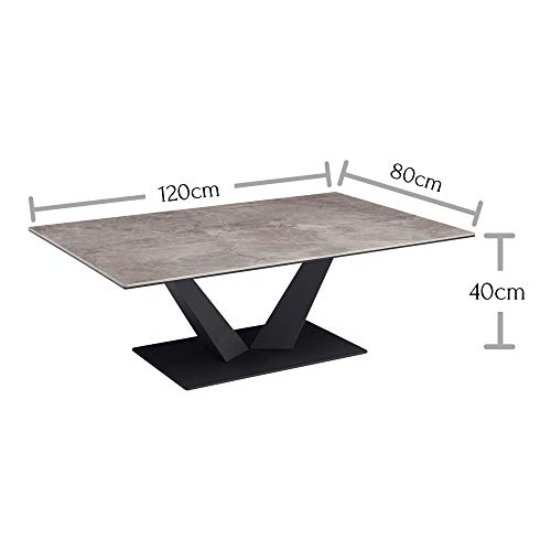 Stella Trading Gisele Couchtisch mit Keramikoberfläche und Metallgestell, Anthrazit – hochwertiger Sofatisch für Ihren Wohnbereich – 120 x 40 x 80 cm (B/H/T)
