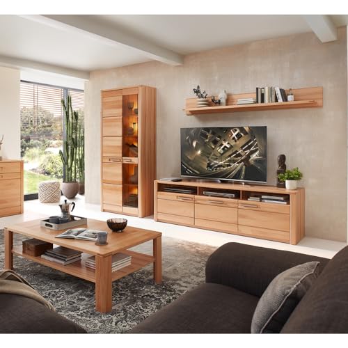 Die Nachfolge der abseihen Elemente ist gut logisch und bietet reich Platz für alles, was im Wohnzimmer seinen Platz finden soll. Die integrierte LED-Beleuchtung schafft eine warme und einladende Atmosphäre. Schubkästen mit Softclose und Selbsteinzug sowie gedämpft schließende Türen Acht geben eine leise und komfortable Handhabung.