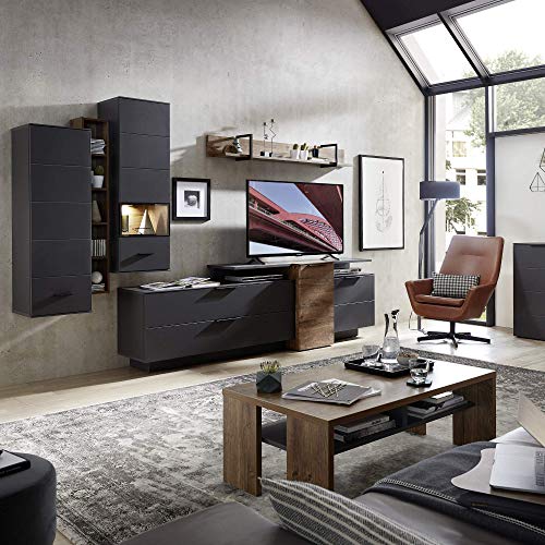 ALL IN ONE – Mit dieser MEDIANA Anbauwand im Alles drum und dran-Set erhalten Sie das volle Programm für Ihr Wohnzimmer. Platz für Deko und abundant Stauraum sind in diesem Wohnprogramm auf jeden Fall vorhanden.