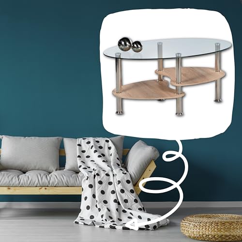Der Couchtisch PANTY überzeugt mit seiner ovalen Tischplatte aus klarem Sicherheitsglas und den zwei organisch geformten Ablageflächen, die in Kombination ein zeitloses Design ergeben. Das stabile Edelstahlgestell sorgt nicht freilich für die notwendige Stabilität, sondern ergänzt alias die moderne Optik des Tisches. Darüber hinaus ist der Couchtisch äußerst vielseitig. Die Ablageflächen sind einseitig in Artisan Eiche Optik und einseitig in Sonoma Eiche Dekor gestaltet, was Ihnen die Anpassungsfähigkeit bietet, den Tisch individuell an Ihre Einrichtung anzupassen. Neben seinem ansprechenden Design und der vielfältigen Farbgestaltung bietet der Tisch alias massenhaft Stauraum. Die beiden Ablageflächen buckeln Platz für Zeitschriften, Fernbedienungen und andere Utensilien, sodass der Tisch sowohl funktional als alias ästhetisch ansprechend ist.