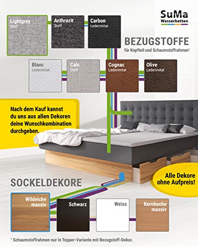 Wasserbett mit Schubkastensockel 200 x 220 cm denn Komplettset von SuMa, Unterbausockel mit 6 Schubkästen, Kopfteil Largo mit hochwertigem Stoffbezug: lightgrey. Sockel: weiß, oder Urteilsfindung Sie die Gesamtheit den 11 Farben im Vergrößerung 2