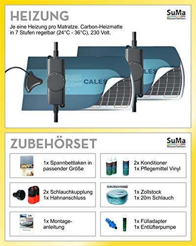 weiterer Lieferumfang : 1 Spann-Bettlaken ÖKO-Tex 100 zertifiziert: Prüfnummer: 57774, 20m Schlauch m. Anschluss-SET, 2x Konditionierer, 1x Pflegemittel, Entlüfterpumpe, Fülladapter und Montageanleitung