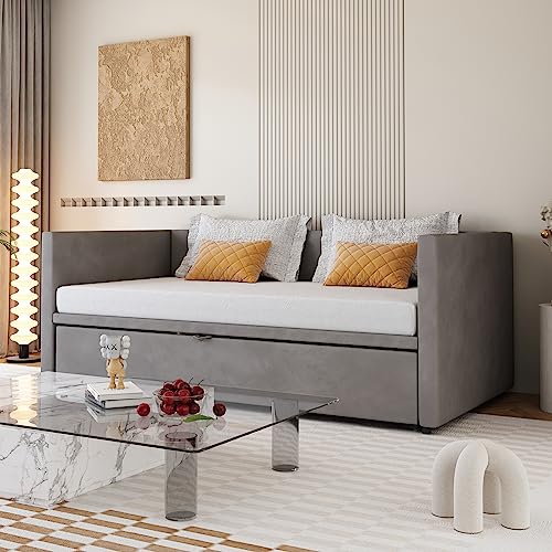 Platzsparendes Design: Das ausziehbare Bett an der Unterseite des Schlafsofas kann einfach herausgenommen oder hineingeschoben werden. Ideal für kleine Räume oder Wohnungen und Gästezimmer.