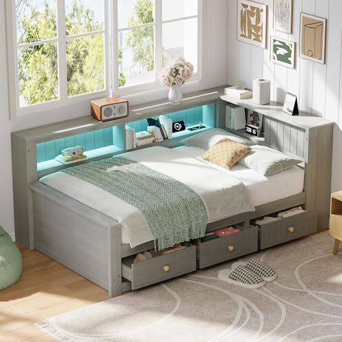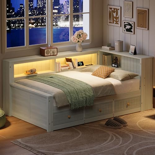 [Multi-Storage Space] There are several storage shelves on the sides of the bed, so you can store items according to their size. The top storage shelf is equipped with 2 sliding doors, which can store your private items or prevent dust. The 3 drawers under the bed can easily store your clothes or bedding, making it dustproof and tidy.