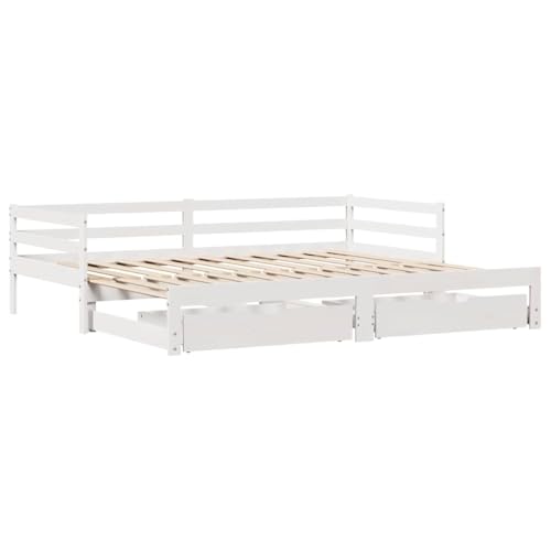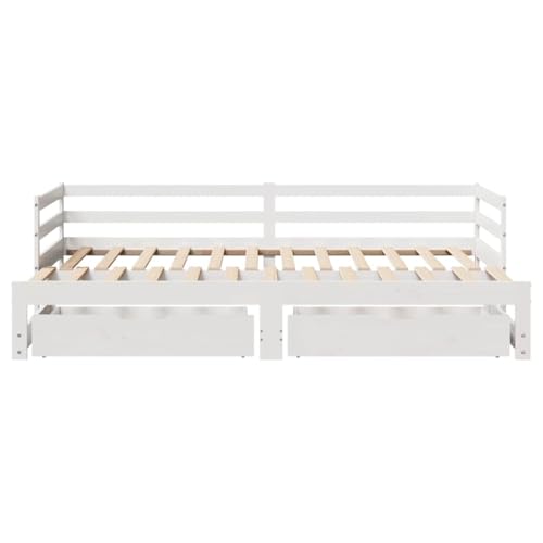 Vielseitiges 2-in-1 Design Dieses Tagesbett aus massivem Kiefernholz in Weiß (90x190cm) dient tagsüber als stilvolles Sofa und lässt sich nachts mühelos in ein komfortables Doppelbett verwandeln. Ideal als platzsparendes Gästebett oder multifunktionales Möbelstück für Wohn- und Schlafzimmer.