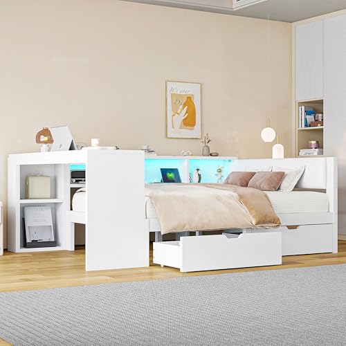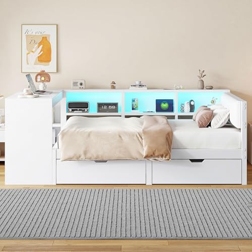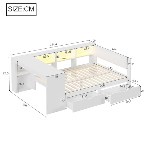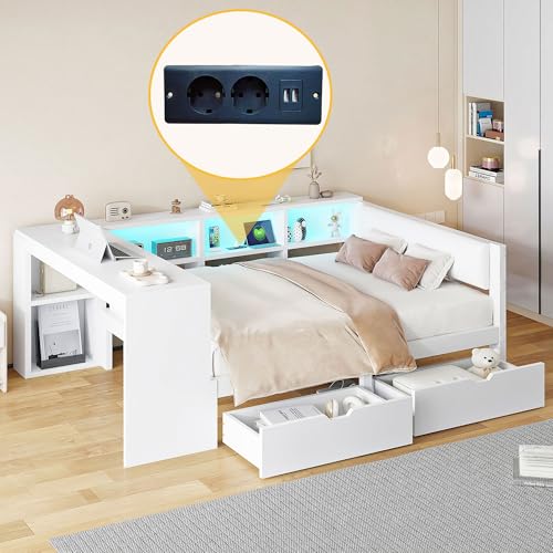 【Bett mit LED Licht und USB Anschlüsse】 Der Innenraum des Stauraums des Jugendbett 140×200 ist mit LED-Lichtleisten ausgestattet, die mehrere Farboptionen bieten und abends für ein perfektes, sanftes Licht sorgen. So lässt sich mühelos eine ruhige oder gemütliche Atmosphäre kultivieren. Dieses Tagesbett 140×200 verfügt über zwei Standardsteckdosen und zwei USB-Anschlüsse im Stauraum, sodass Sie Ihre elektronischen Geräte bequem im Bett liegend aufladen können.