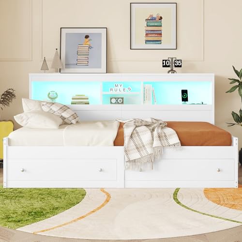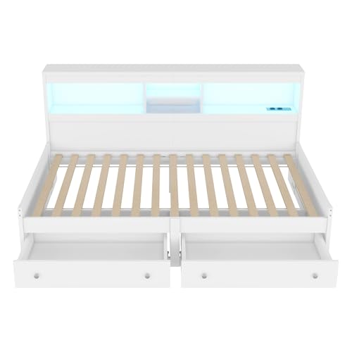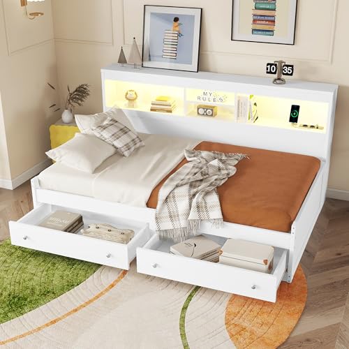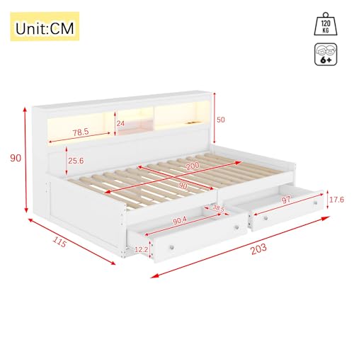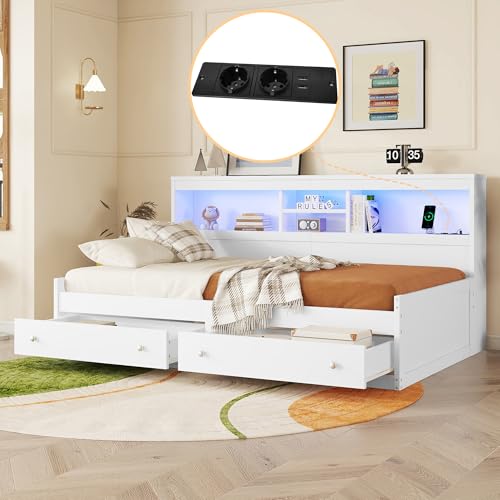 Dieses Schlafsofa im modernen Stil ist aus ausgewählten, hochwertigen Span- und MDF-Materialien gefertigt, die für Langlebigkeit und Komfort sorgen, Gewiss bekannt als den Sinn für Qualität unterstreichen. Das Bett ist mit zwei Schubladen und mehreren Stauraumfächern ausgestattet, die eine clevere Raumnutzung und praktische Aufbewahrung ermöglichen. Das integrierte, farbwechselnde LED-Ambiente-Licht im Kopfteil erzeugt ein individuelles Licht- und Schattenspiel, das der Nacht einen Hauch von Wärme und Romantik verleiht, während die USB- und Ladesteckdosen das Aufladen elektronischer Geräte zu jeder Zeit ermöglichen. Das schlichte und großzügige Design mit einer harmonischen Farbgebung, die sowohl praktisch als bekannt als ästhetisch ansprechend ist, macht es zu einer idealen Kür für Ihr modernes Zuhause. Lassen Sie jede Pause zu einem komfortablen Vergnügen werden.