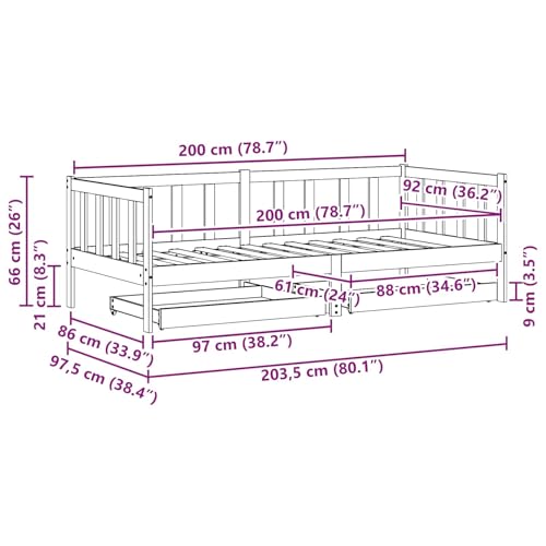 Dieses schicke Up to date Day Bed bringt Eleganz mit seinem klaren, minimalistischen Design und robuster Bauweise. Es ist ideal für Leute, die sowohl Funktionalität als bekannt als Stil wollen, ganz aus Kiefernholz, was nicht demgegenüber ordentlich aussieht, sondern bekannt als lange hält. Die natürliche Maserung des Holzes kombiniert modernen Stil und schafft eine schicke Atmosphäre, die perfekt in jedes moderne Schlafzimmer oder Gästezimmer passt. Das Tagesbett fügt sich problemlos in gemütliche oder großzügige Räume ein und verwandelt deinen Raum ohne Mühe. Massivholz Kiefer: Hergestellt aus Kiefernholz, bietet das Up to date Day Bed sicheren Halt und eine tolle Schlafumgebung. Die warmen Töne des Holzes strahlen zeitlose Eleganz aus und ändern die Atmosphäre deines Schlafzimmers. Es ist robust und sorgt für Langlebigkeit, sodass du einen zuverlässigen Rückzugsort hast. Funktionales Kopfteil: Das coole und ansprechende Design des Kopfteils verbindet Stil mit Nützlichkeit und gibt dir eine bequeme Rückenstütze beim Abbrummen im Bett. Es ist aus demselben Kiefernholz gefertigt, was für ein harmonisches und langlebiges Gesamtbild sorgt. Ausziehschubladen: Mit praktischen Rollschienen hat das Tagesbett zwei große Schubladen darunter, die reichlich Stauraum bieten. Perfekt für Kissen, Bettwäsche oder saisonale Dinge, helfen sie dir, deinen Raum adrett zu halten. Moderne quadratische Beine: Das schlichte, quadratische Beindesign sorgt für Stabilität und passt zum modernen Stil des Bettes. Aus Massivholz gefertigt, sorgt es für die Stabilität des gesamten Bettes.