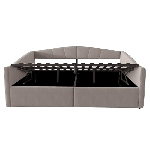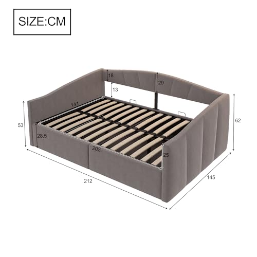 Multifunktionales Schlafsofa: Dieses gepolsterte Schlafsofa vereint die Funktionen eines Bettes und eines Sofas in sich, mit Stauraum unter dem Bett, so dass Sie abstimmen können, ob Sie es in Ihrem Schlafzimmer oder in Ihrem Wohnzimmer aufstellen