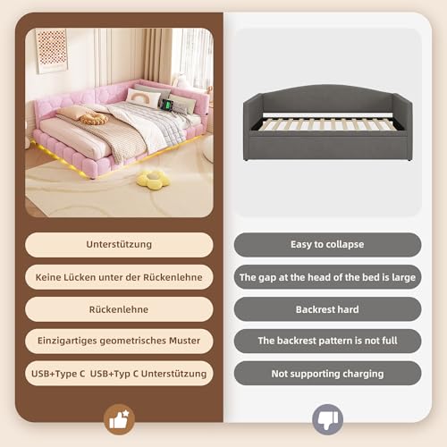 Niedliches und modernes Design: Dieses Schlafsofa kombiniert Stil und Komfort mit einem niedlichen und modernen Design, das schön und funktional ist. Das Bett ist mit Funktionen ausgestattet, die es einfach machen, eine gemütliche Atmosphäre zu arbeiten und Ihre Bedürfnisse zu alimentieren. Egal, ob Sie es in Ihrem Wohn- oder Schlafzimmer aufstellen, es ist die perfekte Abstimmung, um Ihren All zu verschönern.