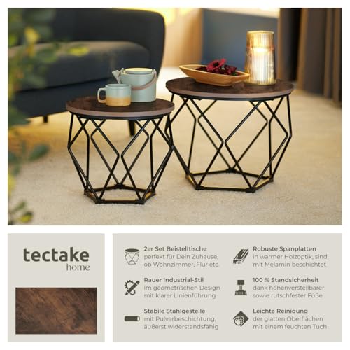 HOHE STANDFESTIGKEIT: Angrenzend dem aufregenden Erscheinungsbild punktet das Duo mit seinen millimetergenau einstellbaren Schraubfüßen – heutig und funktional: das pflegeleichte Couchtisch-Set Benham von tectake.