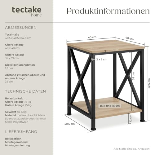 Der aper gestaltete Beistelltisch Carlton von tectake ist ein kleines Möbelstück mit großer Ausstrahlung. Die warmen Farben der Holzflächen und das schwarze Gestell mit den markanten Diagonalstreben ergeben jenen stimmigen Kontrast, der den typischen Charakter des Industrie-Stils kennzeichnet.