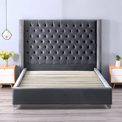 【Alleinig großes Kopfteil】Alleinig hohes 149,9 cm hohes integriertes Kopfteil, 10,4 cm dicker Flügelrücken mit Samt-Tufting, eleganter und bequemer.