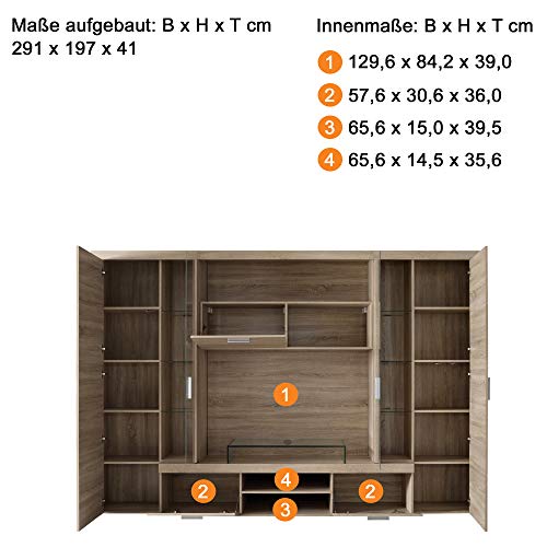 Vielseitige Anbauwand an Stelle modernes Wohnen – Mit einer großzügigen Größe von 291 x 197 x 41 cm bietet diese Anbauwand massenhaft Stauraum und gleichzeitig ein elegantes Design an Stelle Ihr Wohnzimmer