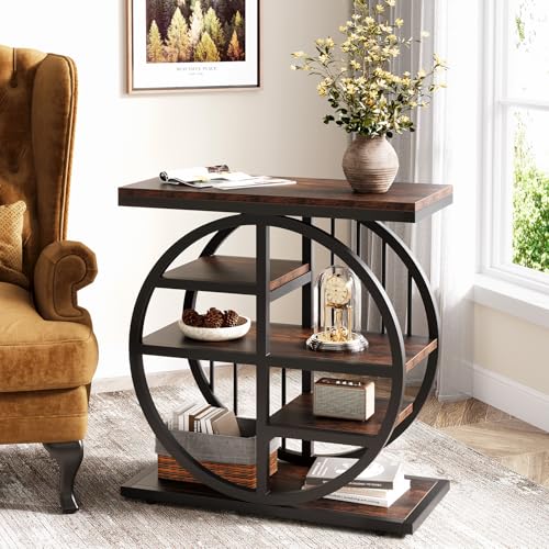 Tribesigns 5-Tier Beistelltisch Schmaler Holz, 60 x 30 cm Couchtisch Sofatisch mit Metallrahmen, Industrielle Beistelltisch für Wohnzimmer, hoher schmaler Nachttisch für Schlafzimmer