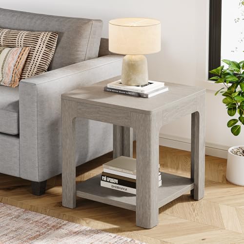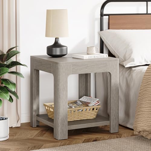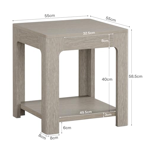 Tribesigns Beistelltisch mit Ablage 55×55×58 cm, 2-stöckiger Holz-Nachttisch für kleine Räume, Rustikaler Farmhouse-Stil, Quadratischer Nachttisch für Wohnzimmer oder Schlafzimmer