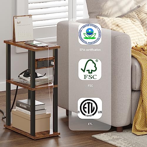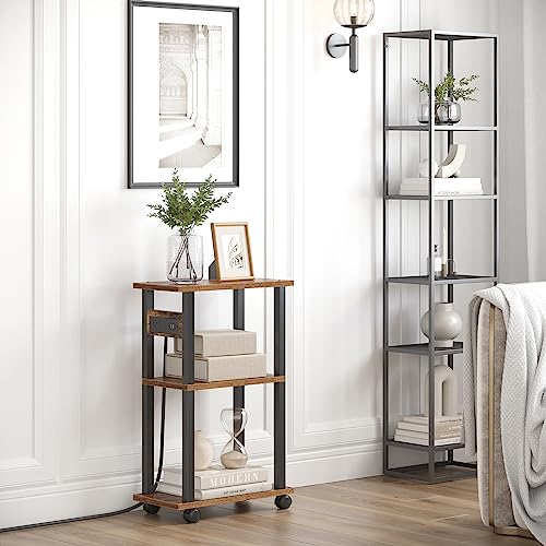 TUTOTAK TB01BB047 Derivat Beistelltisch schmal mit Ladestation, 2er Set Beistelltische Schlank für kleine Räume, schmaler Nachttisch mit USB Anschlüssen und Steckdose, Sofa Beistelltisch mit Rollen, Braun