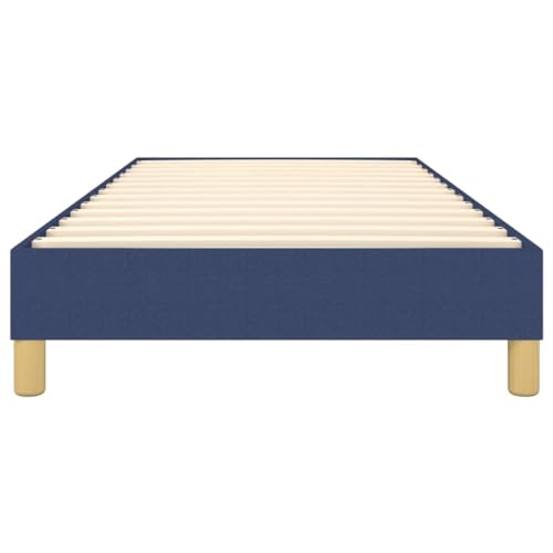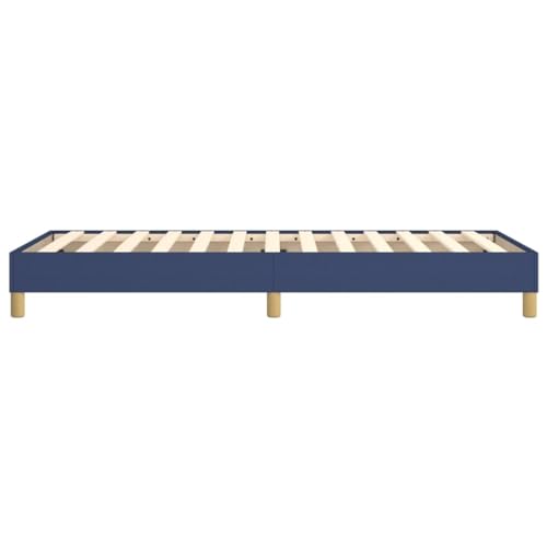 Farbe: Blau. Material: Stoff (100% Polyester), Sperrholz, Holzwerkstoff. Gesamtabmessungen: 203 x 90 x 25 cm (L x B x H). Geeignete Matratzengröße: 90 x 200 cm (B x L) (Matratze ist nicht im Lieferumfang enthalten).