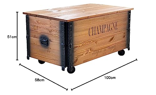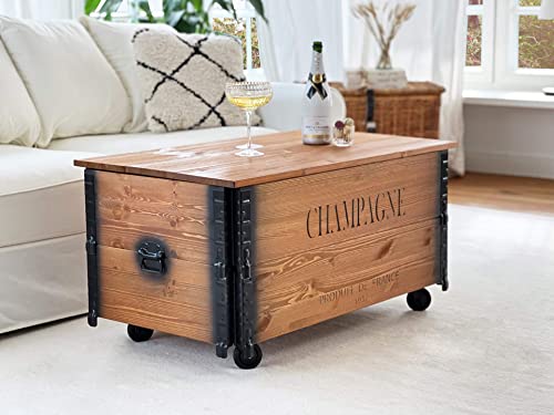 ✔ industrial Truhen-Tisch in XL Größe 100 x 58 x 51 cm, qua beidseitiger Schrift „Champagne“ bedruckt, fertig montiert (ausgenommen Tischplatte)