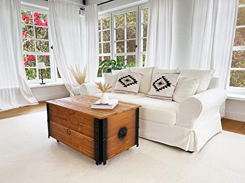 ✔ Holztruhe groß im shabby chic Stil qua klappbarem Deckel, Metall-Beschlägen und Stauraum zur Aufbewahrung