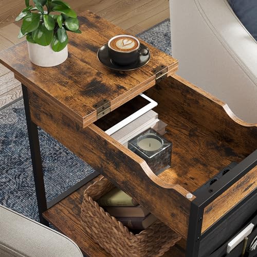 VASAGLE Beistelltisch, Nachttisch mit Steckdose, schmal, mit USB-Anschlüssen, Tasche, für Wohnzimmer, Schlafzimmer, vintagebraun-schwarz LET311B01