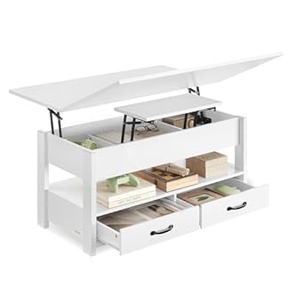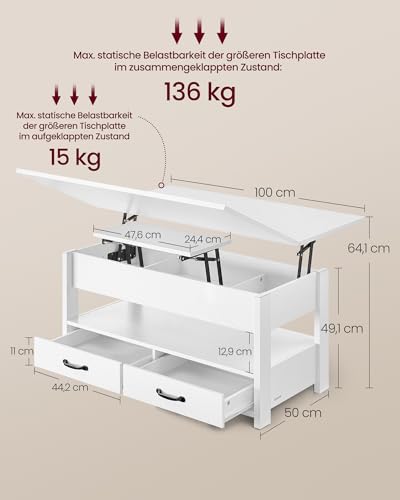 Lift-Top Design: Die große und kleine Tischplatten lassen sich in verschiedene Richtungen ausklappen und bearbeiten so 2 unabhängige Bereiche. Die größere Tischplatte ist zudem ausklappbar, um sich Ihren Bedürfnissen anzupassen