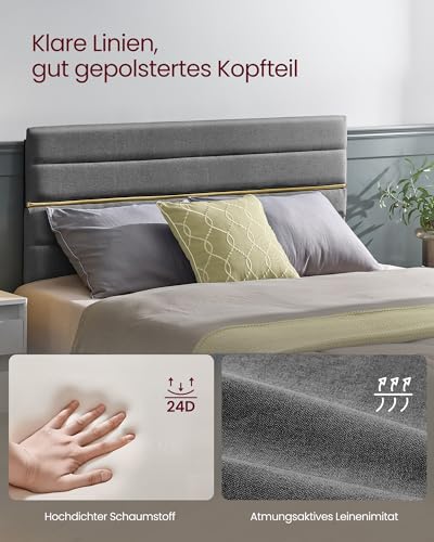 Komfortabel & stilvoll: Aus atmungsaktivem Leinenimitat und hochdichtem Schaumstoff hergestellt, bietet das Kopfteil hohen Komfort beim Anlehnen; das klare Design und die goldfarbene dekorative Linie auf dem Kopfteil schaffen eine stilvolle Note