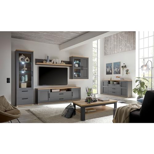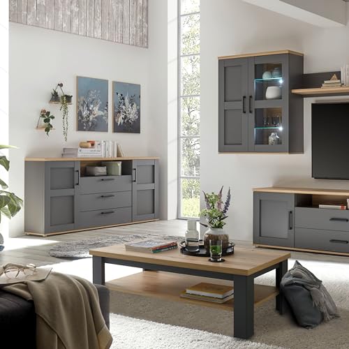 Venezia Couchtisch in Artisan Eiche Optik, Anthrazit – Moderner Sofatisch für Ihr Wohnzimmer – 115 x 40 x 65 cm (B/H/T)