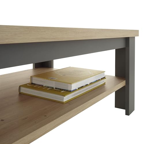 PRAKTISCH – Der Couchtisch bietet auf zwei Ebenen reichlich Platz für Zeitschriften, Fernbedienungen, Accessoires oder Snacks. Die großzügige Aufteilung ermöglicht eine organisierte Aufbewahrung.