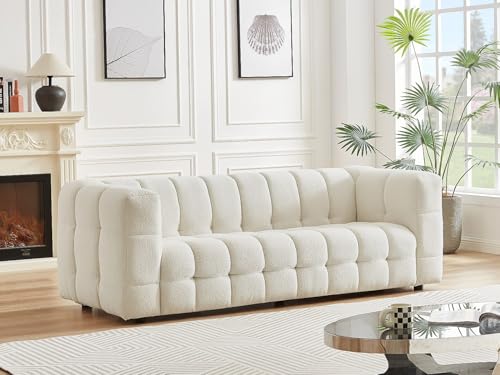Möchten Sie ein modernes und elegantes Sofa? Lassen Sie sich von dem Modell LERICI und seinem ultra-trendigen Bezug verführen. Sein raffiniertes gestepptes Design und seine großzügigen Abmessungen machen ihn zu einer wahren Oase der Ruhe, perfekt zum Entspannen alleinig oder mit Freunden.Produktdetails Farbe (Schattierungen): Weiß Material (Exaktheit): 100 % Polyester Material (Füße): Holz Struktur: Holz, Furnierplatte Finish: Bouclé-Stoff, Gesteppt Sitzkomfort: Ausgewogen Anzahl Personen: 3 Personen Polsterung Sitzfläche: Polyurethanschaum Raumgewicht der Sitzfläche: 24 kg/m³ Unterfederung der Sitzfläche: Nosagfedern, Elastische Polstergurte, Spiralfedern Polsterung der Rückenlehne: Polyurethanschaum Raumgewicht der Rückenlehne: 24 kg/m³ Unterfederung der Rückenlehne: Elastische Polstergurte Mit Armlehnen Produktserie: Made for design Maximale Traglast: 360 kg Montiert geliefert (ausgenommen Beine und/oder Griffe)Ca.-Maße Breite: 213 cm Höhe: 72 cm Hölle: 89 cm Sitztiefe: 163 cm Armlehnenbreite: 25 cm Höhe der Füße: 5 cm Sitzhöhe: 42 cm Sitztiefe: 59 cmVersanddetailsLieferzeit und Versandkosten werden Ihnen vulgo in Ihrem Warenkorb angezeigt.PaketPaket Nr.1: Breite 215 cm, Hölle 89 cm, Höhe 67 cm, Gewicht 58 kg,