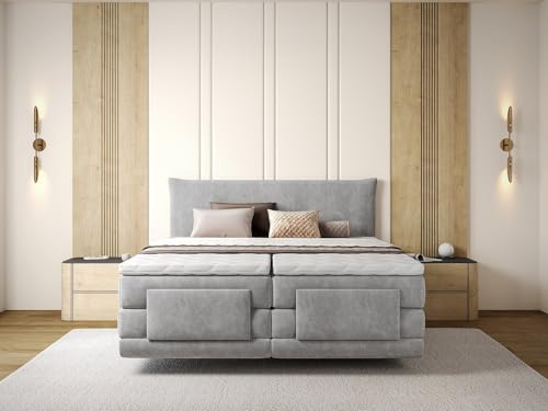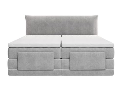 Gönnen Sie sich den Komfort des elektrischen Boxspring 2 x 90 x 200 cm King Size Stoff Hellgrau – Kopfteil + Lattenrost + Matratze Integrierter Topper ZANORO von Palacio. Testen Sie es schnell aus!