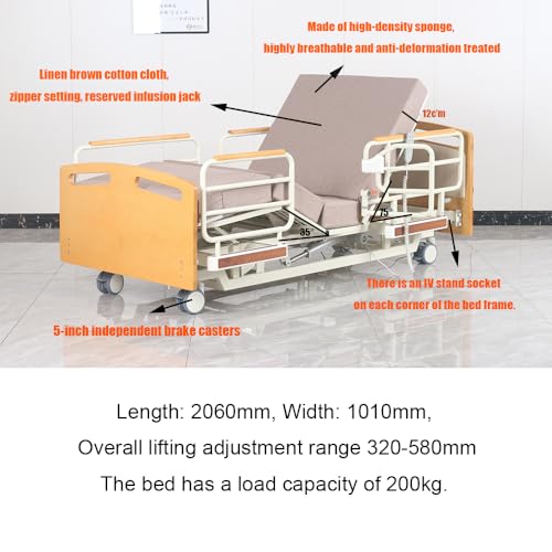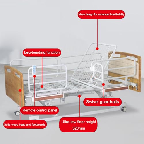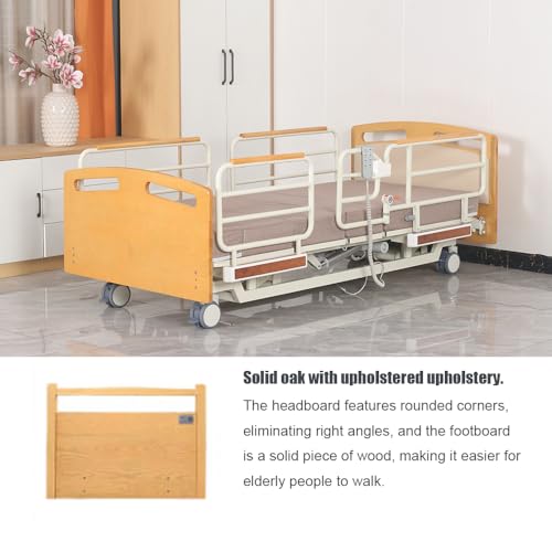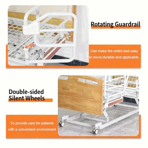 Intelligente Sicherheit: Vollständig geschlossene Seitenstützen verhindern, dass Patienten abrutschen, mit einem intuitiven Design, das es dem Patienten ermöglicht, sich per Knopfdruck in eine bequeme Position zu bewegen. Für Stabilität konzipiert, verfügt dieses voll elektrisch verstellbare Krankenhausbett über einen verstärkten Rahmen aus kaltgewalztem Stahl mit hoher Tragfähigkeit und verdickte Edelstahl-Halbgitter. Fernbedienungen und arretierbare Rollen gewährleisten sichere Mobilität.