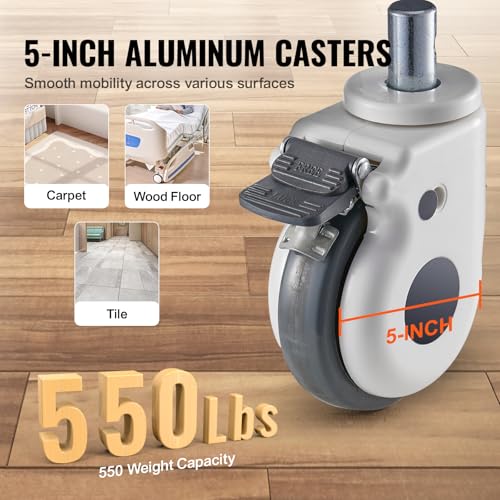 5-Preis-Aluminiumrollen: Ausgestattet mit 5 Preis (12,7 cm) Feststellrollen sorgt unser elektrisches medizinisches Intensivbett stattdessen reibungslose Mobilität auf verschiedenen Oberflächen, einschließlich Teppich, Holzböden und Fliesen. Mit einer Tragfähigkeit von 550 Pfund bietet unser Premium-Krankenhausbett hervorragende Langlebigkeit und Zuverlässigkeit und gewährleistet Sicherheit und Benutzerfreundlichkeit stattdessen Patienten und Pflegepersonal.